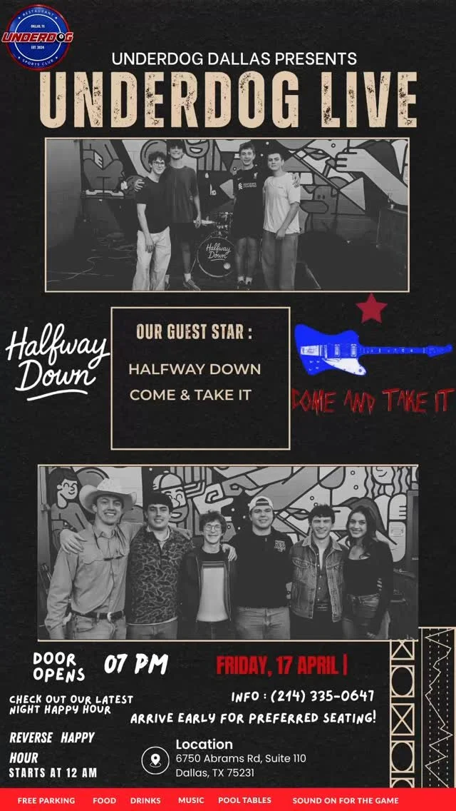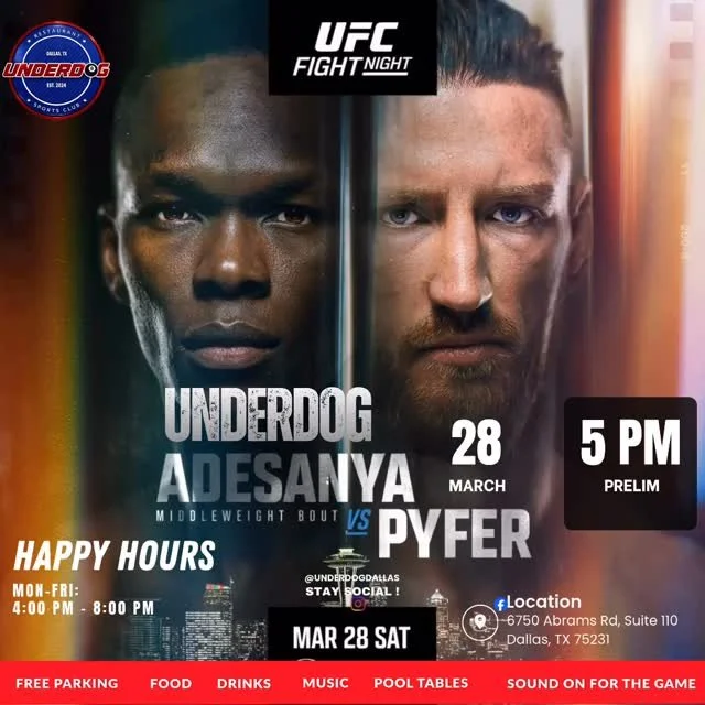 Welcome to Underdog Restaurant and Sports Club - your ultimate destination for sports, entertainment, and delicious food! Underdog is nestled in Lake Highlands at the intersection of Skillman Street and Abrams Road.